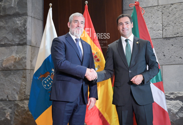 El presidente de Canarias, Fernando Clavijo, recibió hoy, en la sede de Presidencia de Santa Cruz de Tenerife, al lehendakari vasco, Imanol Pradales, de visita oficial en Canarias.