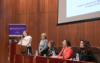 La consejera de Bienestar Social, Igualdad, Juventud, Infancia y Familias, Candelaria Delgado, acompañada por la directora general de Protección a la Infancia y las Familias, Sandra Rodríguez; el rector de la Universidad de La Laguna, Francisco J. García y la directora de la Cátedra Institucional de Infancia y Adolescencia, María Aránzazu Calzadilla, asistió hoy a la entrega de la segunda edición de los Premios María José Rodríguez López, que se impulsan a través de la Cátedra Institucional de Infancia y Adolescencia de la Universidad de La Laguna.