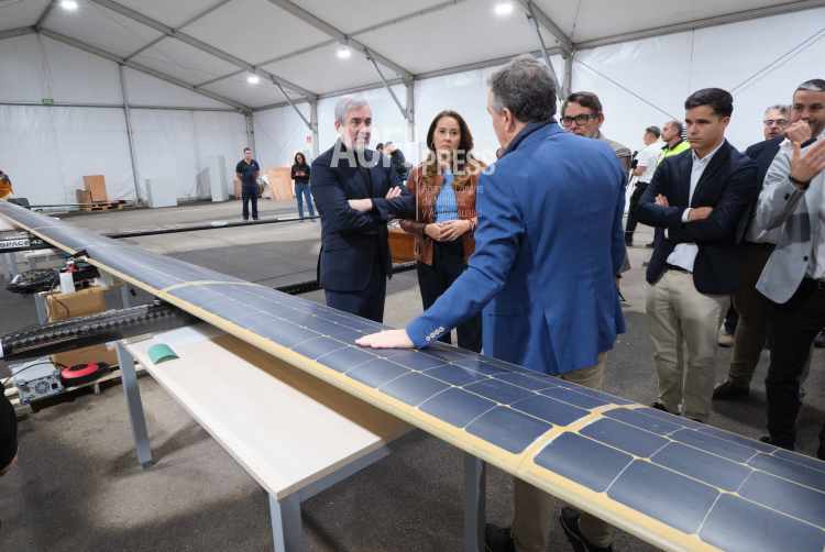 Fernando Clavijo y Lola García realizaron estas declaraciones durante una visita a los proyectos que desarrollan cuatro empresas internacionales especializadas en aeronaves no tripuladas que ya están operando en el Stratoport y utilizando el Centro Polivalente ISSEC para recabar los datos que aportan estos aviones de última generación. Acompañados por el consejero de Política Territorial, Manolo Miranda, y por el director del Parque Tecnológico de Fuerteventura, Eduardo Pereira, visitaron los hangares provisionales instalados junto a la pista de vuelos.