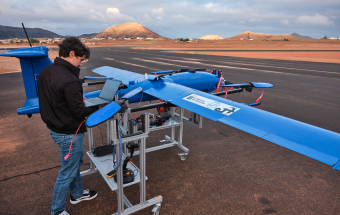 El presidente de Canarias recibió información también del trabajo que está realizando la empresa turco-irlandesa A-TechSYN con cuatro UAS (Sistema de Aeronave no Tripulada) de 4 metros que están volando casi todos los días para avanzar en proyectos de seguimiento de incendios, aunque tienen previsto quedar definitivamente en las instalaciones de Fuerteventura para realizar proyectos relacionados con la seguridad en las playas, la lucha contra la pesca furtiva y otros de control de las costas.