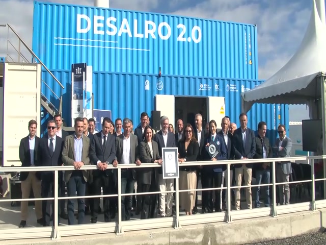 Reconocimiento.- Clavijo asiste a la entrega del Guinness a la planta DESALRO 2.0 del ITC (recursos y 4 totales).