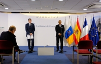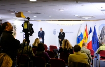 Política.- Rueda de prensa ofrecida por Fernando Clavijo y Daniel Gibbs, presidente de la Colectividad francesa de Ultramar de San Martín (4 fotos).