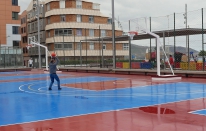 Las Palmas GC.- La Cícer reestrena las canchas de baloncesto abiertas de la Plaza Ortiz Wiot con nuevo pavimento y vallado (3 fotos).