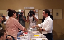 Autonmicas 2019.- Asier Antona (PP), candidato a la Presidencia del Gobierno, ejerce su derecho al voto en La Palma (2 fotos).