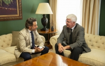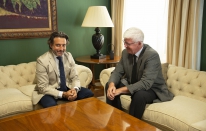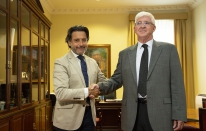 Parlamento.- El presidente del Parlamento de Canarias, Gustavo Matos, recibe al presidente de la Audiencia de Cuentas, Pedro Pacheco (3 fotos).