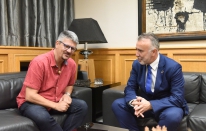 Música.- Ángel Víctor Torres traslada al director de Barrios Orquestados el apoyo del Gobierno de Canarias al proyecto, que avanza hacia su internacionalización (2 fotos).