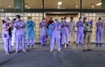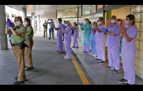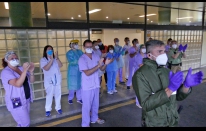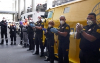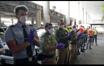 COVID-19.- Homenaje de la seguridad privada al personal sanitario en el Hospital Universitario de Gran Canaria Dr. Negrín (16 fotos).