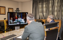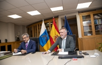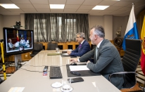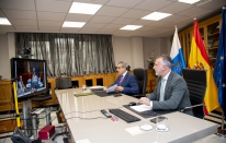 COVID-19.- El presidente de Canarias, Ángel Víctor Torres, junto al vicepresidente y consejero de Hacienda, Presupuestos y Asuntos Europeos, Román Rodríguez, mantiene una reunión telemática con la ministra de Hacienda, María Jesús Montero (12 fotos).