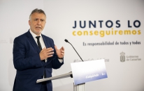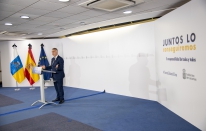 COVID-19.- Ángel Víctor Torres informa en rueda de prensa sobre los asuntos acordados en la decimosegunda reunión por videoconferencia de los presidentes autonómicos con el presidente estatal Pedro Sánchez (23 fotos).