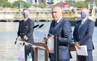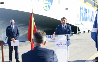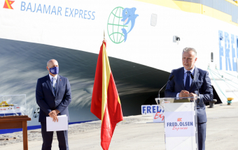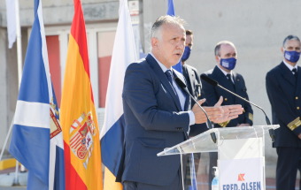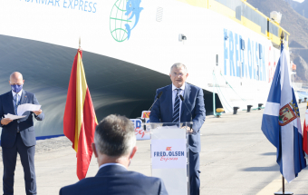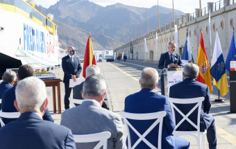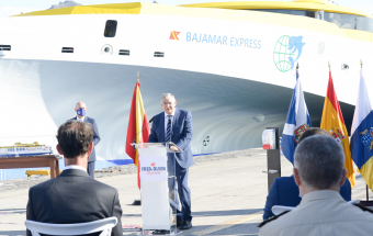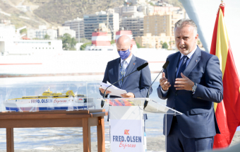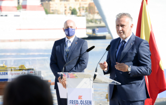 Transportes.- Ángel Víctor Torres asiste a la presentación nuevo buque Bajamar Express de Fred Olsen, trimarán que cubrirá la ruta entre Tenerife y Gran Canaria (28 fotos).
