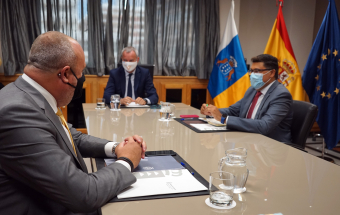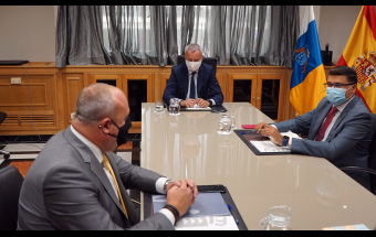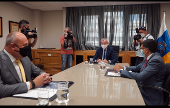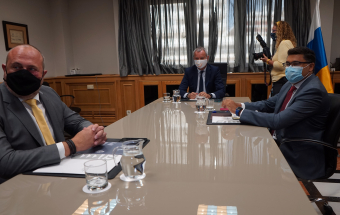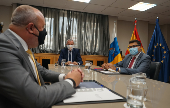 Política.- El consejero Sebastián Franquis se reúne con los vicepresidentes de los cabildos de Gran Canaria y Tenerife para coordinar actuaciones en materia de transporte terrestre (5 fotos).