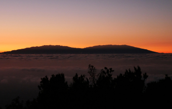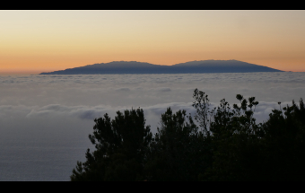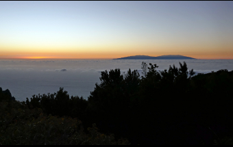 La Palma.- Así luce la puesta de sol en la Palma, el día en que se da por estabilizado el incendio en Garafía, desde los altos del Garajonay en La Gomera (3 fotos).