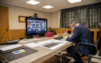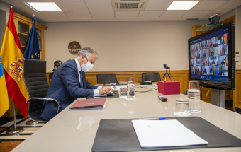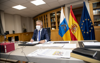 COVID-19.- Ángel Víctor Torres asiste a la reunión telemática de presidentes autonómicos con el presidente nacional Pedro Sánchez (12 fotos).