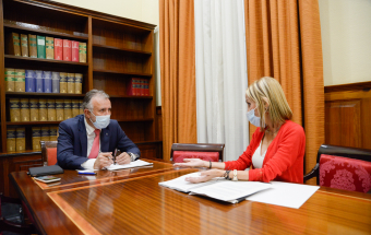 Política.- El presidente del Gobierno de Canarias, Ángel Víctor Torres, se reúne con la portavoz del Grupo Parlamentario Popular, María Australia Navarro (6 fotos).