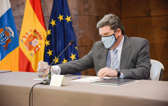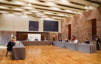 Economía.- Ángel Víctor Torres y el ministro José Luis Escrivá mantienen un encuentro con organizaciones sindicales y empresariales (16 fotos).