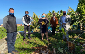 Agricultura.- Clara Aguilera y Alicia Vanoostende visitan finca platanera en Puerto de la Cruz (2 fotos).