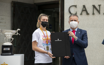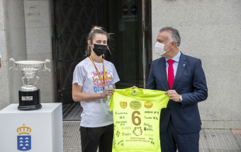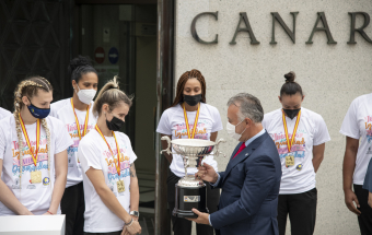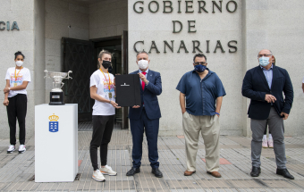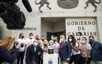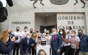 Voleibol.- Ángel Víctor Torres recibe al CV CCO 7 Palmas tras lograr el título de la Liga Iberdrola (23 fotos).