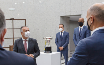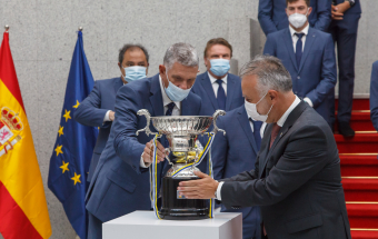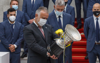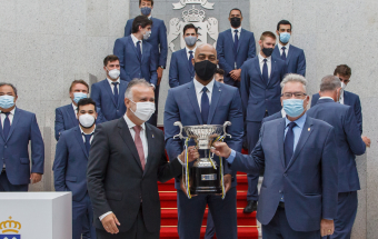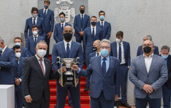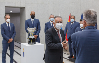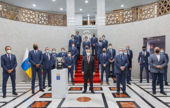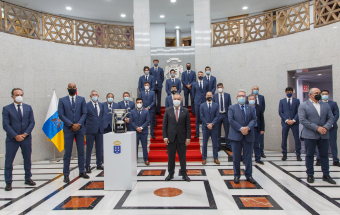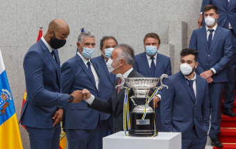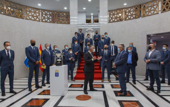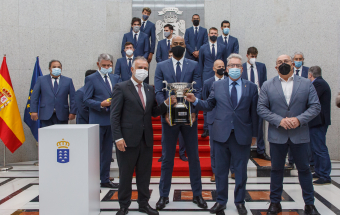 Voleibol.- Ángel Víctor Torres recibe al CV Guaguas tras lograr el doblete (13 fotos).
