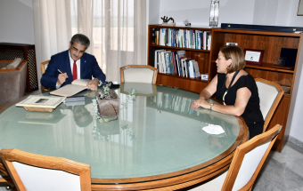 Lanzarote.- Román Rodríguez ser reúne con la alcaldesa de Arrecife, Astrid Pérez (6 fotos).