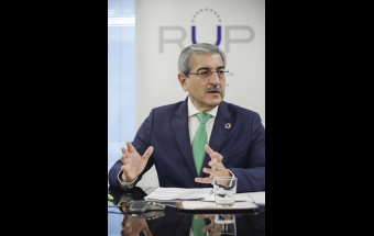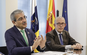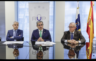 Política.- Román Rodríguez atiende a los medios de comunicación en la Oficina de Canarias en Bruselas (7 fotos).