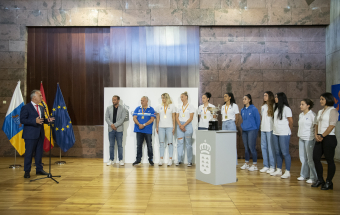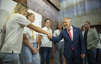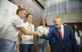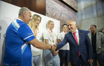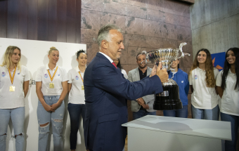 Voleibol.- Ángel Víctor Torres recibe al CV Haris femenino tras proclamarse campeón de la Superliga 1 (13 fotos).