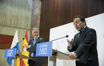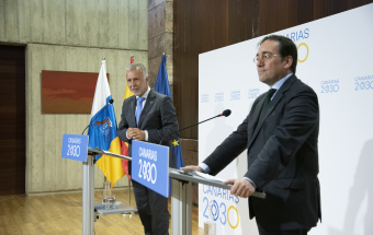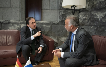Política.- Ángel Víctor Torres, recibe al ministro de Asuntos Exteriores, Unión Europea y Cooperación, José Manuel Albares (24 fotos).