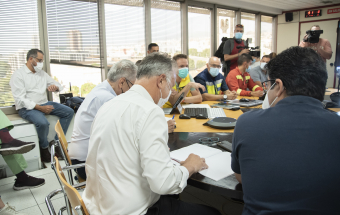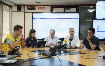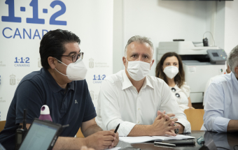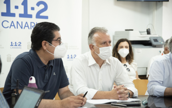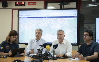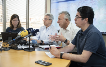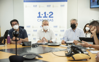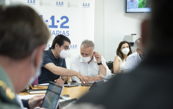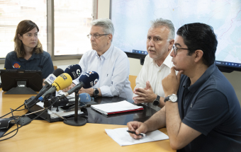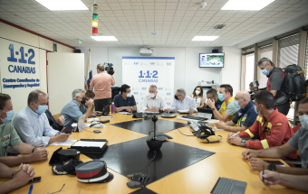 Incendio Realejos.- Ángel Víctor Torres preside la primera reunión técnica del día sobre la extinción del incendio forestal en el norte de Tenerife (18 fotos).