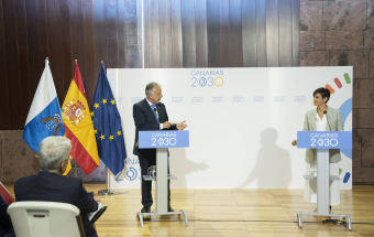 Política.- Rueda de prensa conjunta de Ángel Víctor Torres y la ministra Isabel Rodríguez tras los actos realizados durante la tarde (16 fotos).