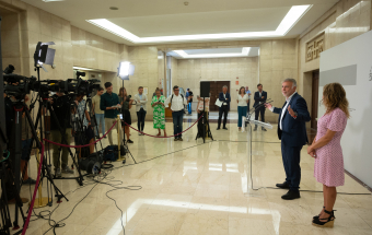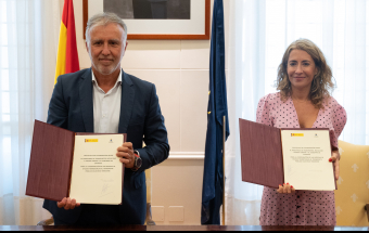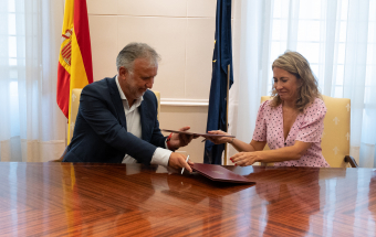 Política.- Ángel Víctor Torres firma un protocolo para las medidas de ayudas transitorias al transporte público (14 fotos).