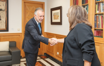 Recepción.- Ángel Víctor Torres recibe al presidente de la Asociación de Descendientes Canarios de San Antonio (Texas), Freddie Bustillo (7 fotos).