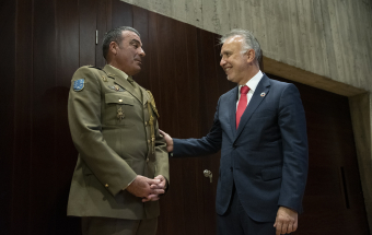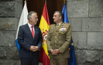 Política.- Ángel Víctor Torres recibe al general Julio Salom Herrera, nombrado recientemente jefe del Mando de Canarias (6 fotos).
