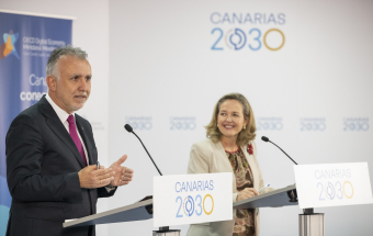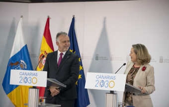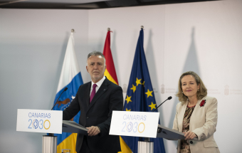 Política.- Ángel Víctor Torres recibe a la vicepresidenta primera y ministra de Asuntos Económicos y Transformación Digital, Nadia Calviño (28 fotos).
