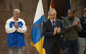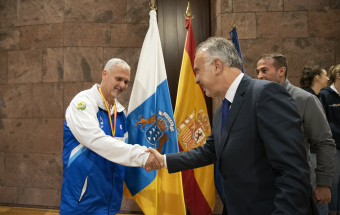 Voleibol.- Ángel Víctor Torres recibe a la plantilla del Haris Tenerife (10 fotos).