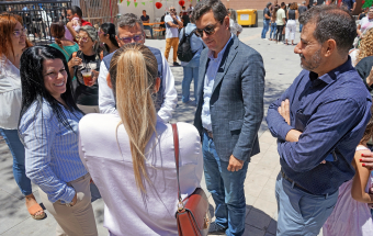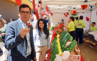 Mayo 2023.- Pablo Rodríguez, María Fernández y Fabiola Calderín (CC) visitan en Valsequillo la Feria de la Fresa (6 fotos).