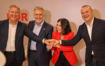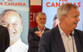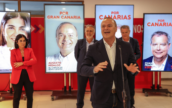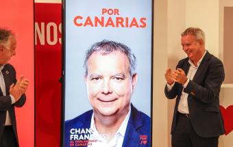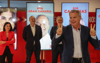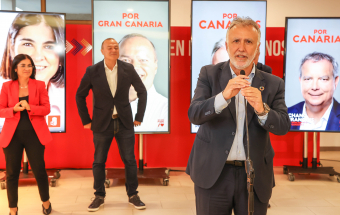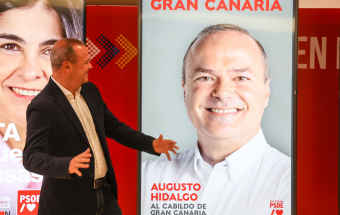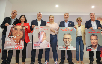 Mayo 2023.- Ángel Víctor Torres interviene en el acto del inicio de la campaña del PSOE con la pegada de carteles (16 fotos).