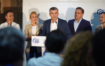 Mayo 2023.- Manuel Domínguez (PP) valora los resultados electorales obtenidos (9 fotos).
