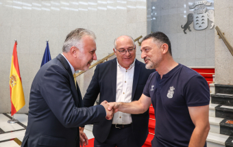 Fútbol.- Ángel Víctor Torres recibe e la UD Las Palmas tras el ascenso a Primera (13 fotos).