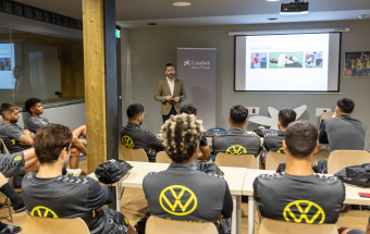 Banca.- CaixaBank organiza una jornada de educación financiera con la plantilla de la UD Las Palmas (2 fotos).