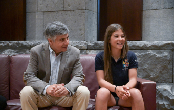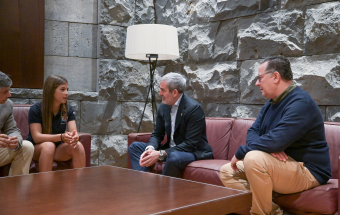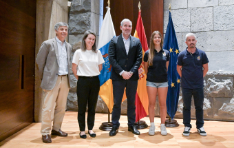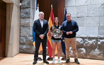 Polideportivo.- Fernando Clavijo recibe a la campeona del Mundo de Optimist (14 fotos).