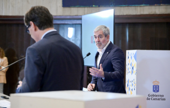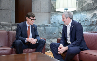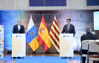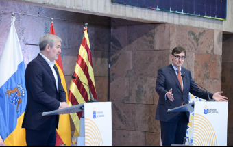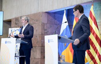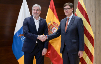 Política.- Fernando Clavijo mantiene un encuentro bilateral con el presidente de la Generalitat, Salvador Illa (12 fotos).