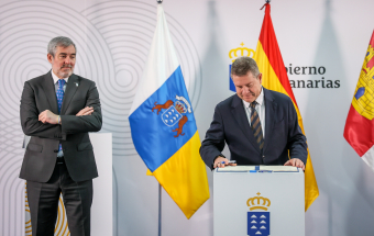 Política.- Fernando Clavijo y Emiliano García-Page suscriben un convenio de colaboración (37 fotos).