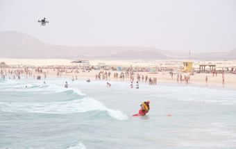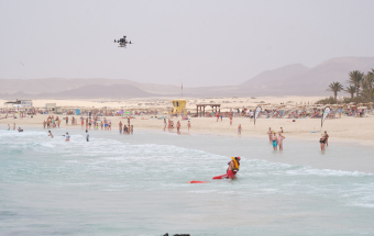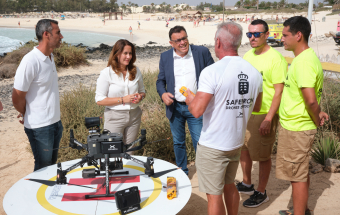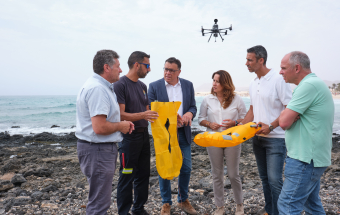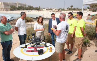 Emergencias.- El Gobierno de Canarias presenta en La Oliva un proyecto de rescate en playas con drones (21 fotos).