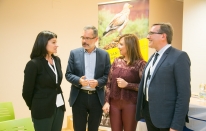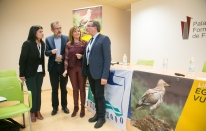 La consejera de Política Territorial, Sostenibilidad y Seguridad del Gobierno de Canarias, Nieves Lady Barreto, acompañada por el presidente del Cabildo de Fuerteventura, Marcial Morales; la responsable de la Red de Endesa en las islas no capitalinas, Margarita Paz; el responsable de Medio Ambiente y Distribución de e-Distribuzione-empresa de Enel, Mauro Salvadori, y la consejera delegada de Gestión y Planeamiento Territorial y Medioambiental (Gesplan), Beatriz Calzada, presentó hoy en el Palacio de Formación y Congresos de Puerto del Rosario, el proyecto Life Egyptian Vulture, a través del cual Canarias e Italia aúnan esfuerzos para la protección del guirre.