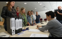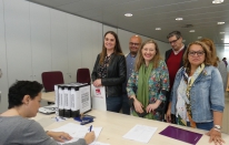 Victoria Rosell y Meri Pita, números 1 y 2, respectivamente, de Unidas Podemos al Congreso de los Diputado por la provincia de Las Palmas en las Elecciones Generales del 28 de abril, presentaron hoy su candidatura en la Junta Electoral Provincial, junto a las del resto de personas que conforman la lista de la formación morada.