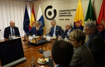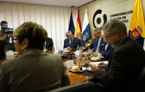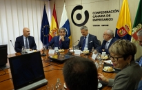El vicepresidente del Gobierno y consejero de Hacienda, Presupuestos y Asuntos Europeos, Román Rodríguez, se reunió esta mañana en Las Palmas de Gran Canaria con el comité ejecutivo y miembros de la Confederación Canaria de Empresarios.