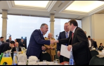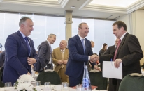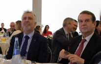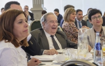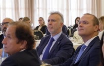 El presidente de Canarias, Ángel Víctor Torres, asistió esta mañana en el Hotel Santa Catalina de Las Palmas de Gran Caanria a la conferencia que imparte el alcalde de Vigo, Abel Caballero, organizada por Prensa Ibérica.