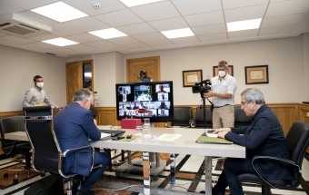El presidente de Canarias, Ángel Víctor Torres, presidió este lunes desde la sede de la Presidencia en Las Palmas de Gran Canaria una reunión telemática con los representantes de la Federación Canaria de Municipios. En esa reunión, en la que participó la presidenta de la Fecam, María Brito, junto a los representantes de su Comité Ejecutivo, e intervino también el vicepresidente del Gobierno de Canarias y consejero de Hacienda, Presupuestos y Asuntos Europeos, Román Rodríguez, el jefe del Ejecutivo planteó un orden del día idéntico al que se debatió en la reunión con los representantes de la Federación Canaria de Islas.