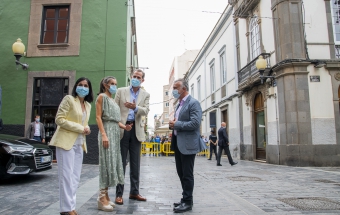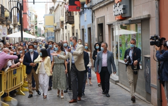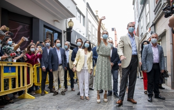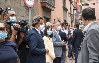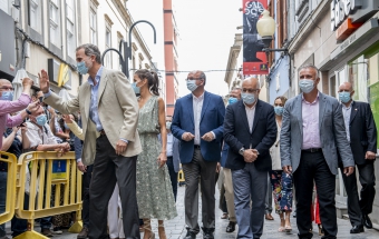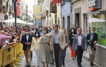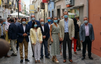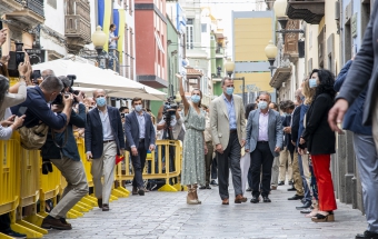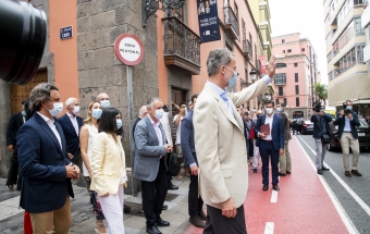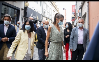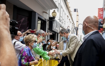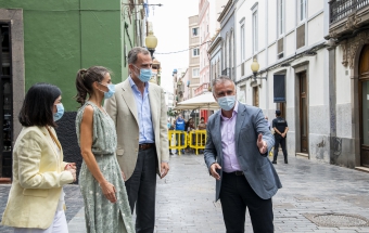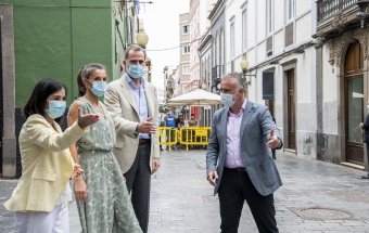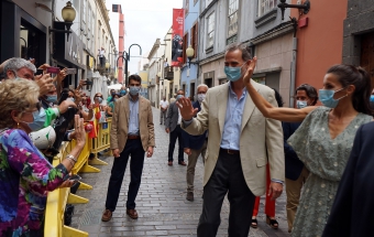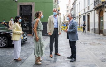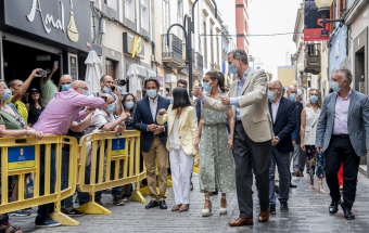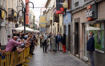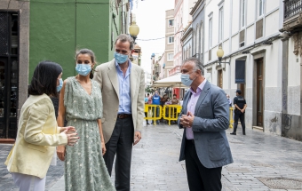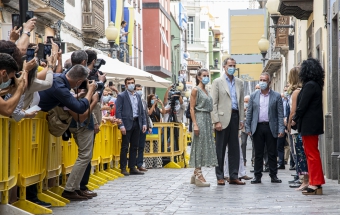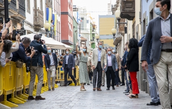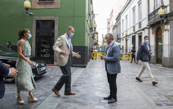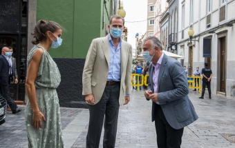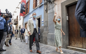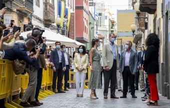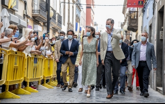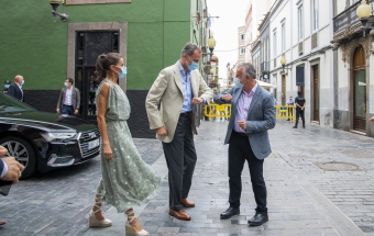 La pareja real recorrió parte de la calle Cano del histórico barrio de Triana Vegueta pasadas las once y media de la mañana hasta llegar al inmueble que vio nacer al escritor, donde ambos fueron recibidos por el presidente del Cabildo, Antonio Morales, el alcalde de la ciudad, Augusto Higalgo, y la consejera insular de Cultura, Guacimara Medina, así como por la directora del museo, y experta en Galdós, Victoria Galván.