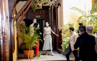 Los Reyes, que llegaron acompañados por el presidente del Gobierno canario, Ángel Víctor Torres, y la ministra de Política Territorial, Carolina Darias, fueron acogidos en el interior de la casa por un dúo de cuerda de la Orquesta Filarmónica de Gran Canaria que hizo sonar sus acordes entre los muros de piedra de esta antigua casa que, al igual que el resto de los museos del Cabildo, hoy por fin abrió sus puertas al público.