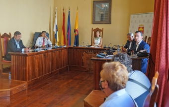 El consejero de Obras Públicas, Transporte y Vivienda del Gobierno de Canarias, Sebastián Franquis, mantuvo esta mañana, un encuentro de trabajo con el vicepresidente y consejero de Obras Públicas, Infraestructuras y Transportes del Cabildo de Gran Canaria, Miguel Ángel Pérez, con la alcaldesa de Agaete, María del Carmen Rosario y con los representantes de la Cofradía de Pescadores de este municipio. El consejero regional celebró esta reunión con la finalidad de escuchar y evaluar las propuestas de mejora de las instalaciones portuarias que le trasladen desde las instituciones y la cofradía para posteriormente poner en marcha una intervención desde el Gobierno de Canarias, tal y como se comprometió Sebastián Franquis tras resolver el contrato y dejar sin efecto el proyecto del macromuelle aprobado en la anterior legislatura.